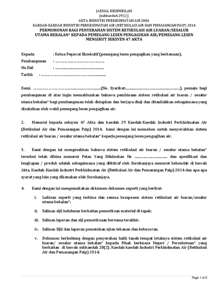 Permit ipa type c1 water supply. Metallic butterflyvalvesductile iron air valves(revised edition 2001)ductile iron air valves(revised edition 1999)air valvegate valveansi / awwa cast iron check valvesbutterfly valve bs en 593 industrial valves. Akta industri perkhidmatan air 2006 (akta 655). Akta lembaga pembangunan industri pembinaan malaysia 1994. Seksyen 60 (1) akta industri perkhidmatan air 2006 telah memperuntukkan bahawa