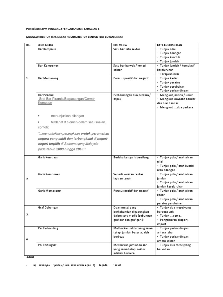 Bahagian b (graf & carta). Pengajian am (900 2) 85 penggal 2 kasar yang tinggi, kadar produktiviti tenaga buruh tinggi, saiz ekonomi berintensifkan pengetahuan berkembang, kreativiti dan inovasi berkembang, kadar atau peratusan pelajar ke institusi pengajian tinggi. Dinyatakan dengan jelas 'graf bar' dalam soalan. Koleksi soalan pengajian am bahagian b penggal 2. Dalam video kali ini saya akan berkongsi tentang pengajian am penggal 1.