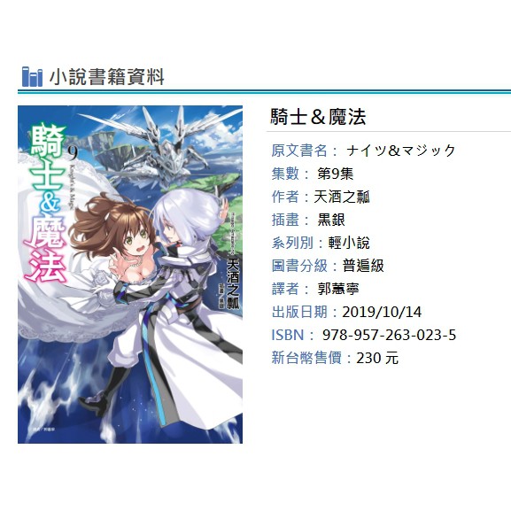 Source: a.ecimg.tw 《騎士&魔法》 (日語: ナイツ&マジック ) 是 天酒之瓢 ( 日語 : 天酒之瓢 ) 著作的日本輕小說作品。最初是發表於小說投稿網站《成為小說家吧》的網路連載小說。由 主婦之友社 ( 日語 : 主婦の友社 ) 出版,插畫為黑銀。