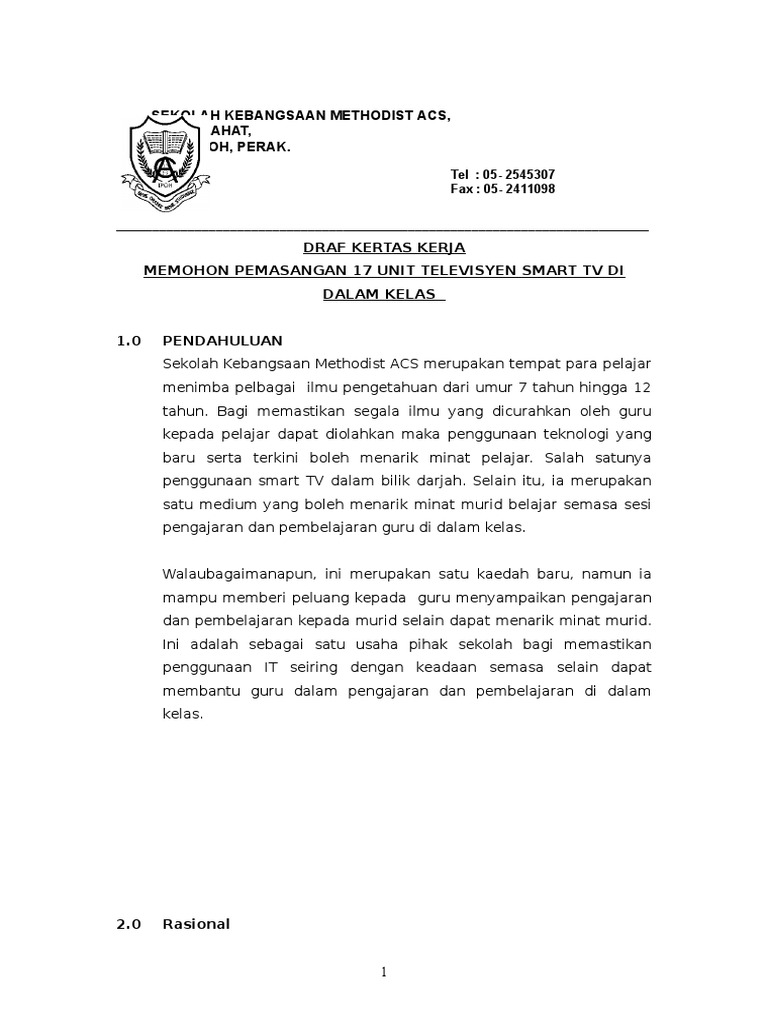 Contoh kertas kerja mohon peruntukan membeli peralatan ict. Kertas kerja permohonan peruntukan kewangan bagi kem world jota (jamboree on the air) dan kursus bencana alam pengakap muda smk pokok sena 2015 a tujuan memohon peruntukan kewangan bagi 7 orang pengakap remaja kumpulan 71 smk pokok sena bagi mengikut kem world jota dan kursus bencana alam. Format kertas kerja permohonan peruntukan bantuan khas perbendaharaan kementerian pembangunan wanita, keluarga dan masyarakat kepada pertubuhan bukan kerajaan (ngo) perhatian: Dijadikan sebagai asas kelulusan, hanya sebagai. Kertas kerja ini tidak boleh dijadikan sebagai asas kelulusan, hanya sebagai contoh kepada pihak pertubuhan dalam menghasilkan kertas kerja yang menepati
